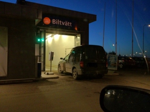 Det var nämligen dax att tvätta bilen, okej det har varit det ett tag men igår skulle det ske! En tur till den vanliga macken visade att det var fler än vi som hade tänkt tanken. Kön var lång men vi köpte en tvättbiljett och väntade lydigt på vår tur. Sakta sakta rullade vi framåt i kösystemet.