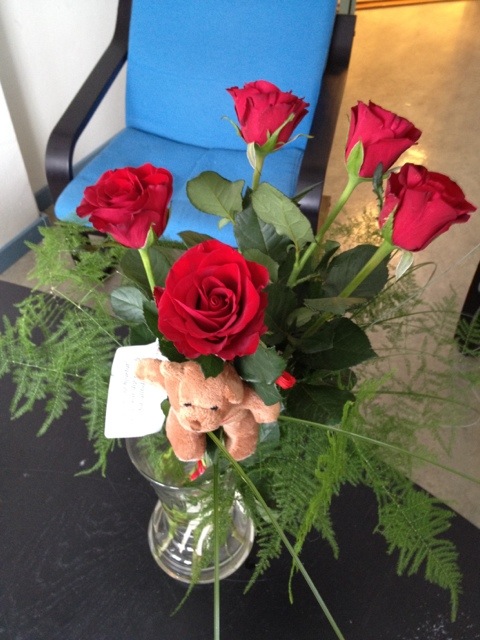 Vad jag gav mitt hjärta? Självklart hennes favoritblommor samt ett smycke som jag vet att hon har önskat sig. Tyvärr har firman som jag handlat av klantat till det och levererat fel. Bara att ringa i morgon och be att få rätt vara levererad!