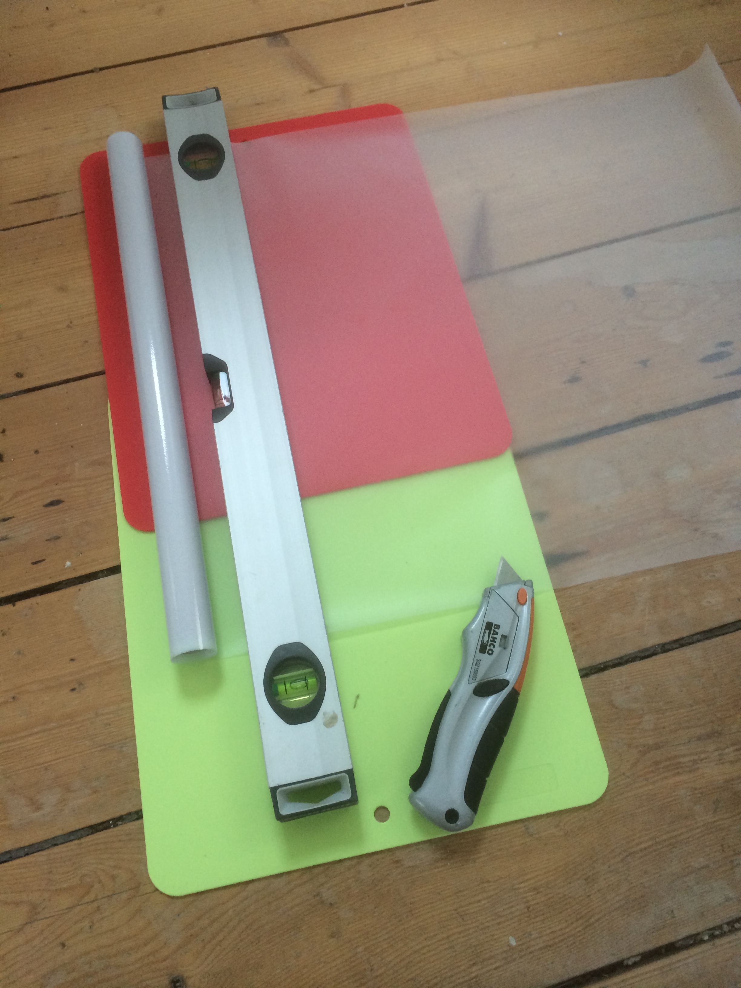 Själva monteringen av fönsterfilmen bjöd inte på några större problem, det var bara att mäta, skära och montera.