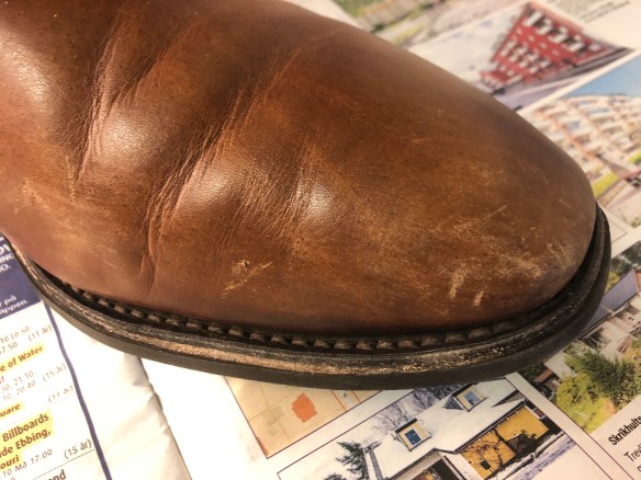 Så istället för att köpa skokräm för ca 150kr blev summan strax över 700kr och ett par timmars jobb fördelat på några kvällar. Fast jag har ju två nya borstar också…