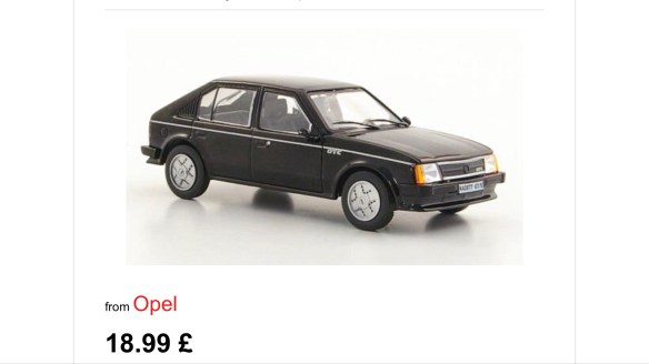 Satt och slösurfade på mobilen utan någon särskild tanke. Plötsligt var jag inne på någon sida med modellbilar. Hittade en röd Volvo 244 årsmodell 1978 i skala 1:43 för ca 34€. Egentligen skulle jag vilja ha den som en röd 242 från 1975, men någon sådan hittade jag inte. Priset gjorde att det inte blev något spontanköp heller. En annan bil som dök upp i skala 1:43 var min saknade Opel kadett GTE från 1984. Det är fortfarande den bil som jag saknar mest av de bilar jag har ägt. (Här har jag skrivit om den tidigare) Min riktiga GTE var röd, så modellen hade gärna fått vara det också. Den var lite billigare med sina ca 19£ men det var fortfarande lite för dyrt för ett spontanköp.