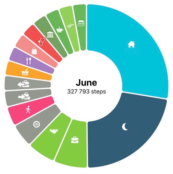 Den stora trenden med promenader håller fortfarande. 297 536 steg blev det totalt under månaden. Det innebär 9917,8 steg/dag. (Måste nog titta på mina skor så det inte snart är hål på sulan) Helt otroligt att jag som brukade presentera mig som idrottsallergiker plötsligt har blivit en regelbunden motionär. Fast allt prat om att det kommer bli en vana, ett måste att gå varje dag, nej det har jag inte märkt av ännu.