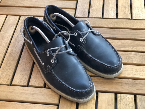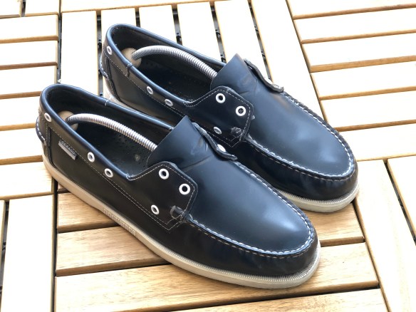 Ett par seglarskor, dock av bättre kvalité inbillar jag mig. Fast de väntar på att bli utbytta då sulan och en söm har gått sönder på dem, men det är åttonde säsongen jag använder dem!