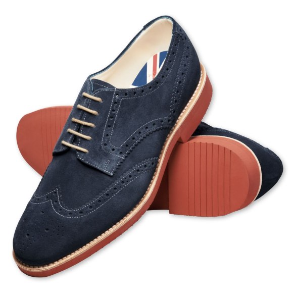 Charles Tyrwhitts derby ca 1300kr håller ca 2-3 år, har jag köpt på nätet när det var rea utan att ha vare sig provat eller känt på. Ett experimentköp med andra ord. Denna sko är randsydd vilket enkelt innebär att sulan (gummi) och ovanlädret är ihopsytt istället för limmat som på Ecco skon. Fördelar med detta är att sulan kan bytas ut när den blir sliten och att den bättre formar sig efter foten. (Hade man kunnat göra det på min loafer hade den kunnat användas ett par år till.) Just denna modell kommer från Charles Tyrwhitt som sannolikt köper sina skor från Loake. Här har man dock tagit en del genvägar för att hålla ungefär samma pris som  på en limmad sko. (Randsydda är dyrare att tillverka de kräver flera moment.) Bland annat har man snålat in på skinnet som är av sämre kvalité än Ecco. Det märks på den plasthinna man har lagt på lädret. Det ger en väldigt glansig yta som är lätt att hålla blank i början men sedan börjar plasten spricka och till slut lossna vilket definitivt inte gör en vackrare sko. Så här blir det sannolikt tvärtom en skon ovan, sulan håller men ovanlädret behöver istället bytas ut så småningom.