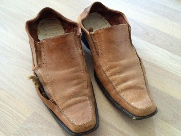 Men här står äntligen mina nya skor redo att börja användas under torrt väder så lädersulan ”får gås in” som jag såg att någon annan bloggare utryckte sig